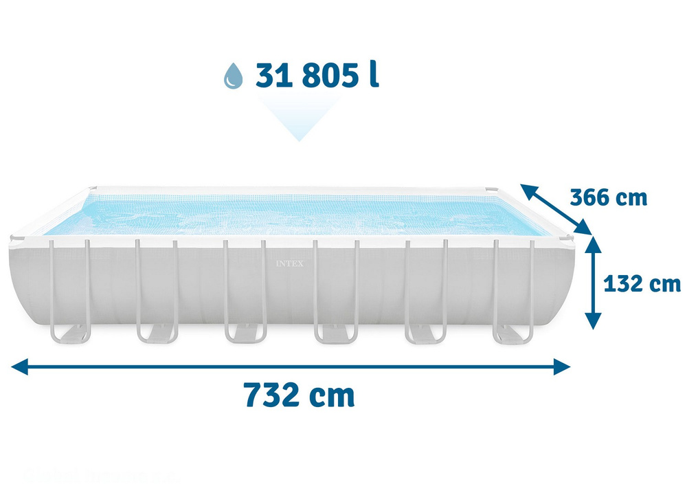 - Basen ogrodowy stelażowy prostokątny Intex Ultra XTR Frame o wymiarach 732 x 366 x 132 cm. Basen został wykonany z niezwykle mocnego trójwarstwowego PVC. W zestawie znajdują się niezbędne akcesoria.