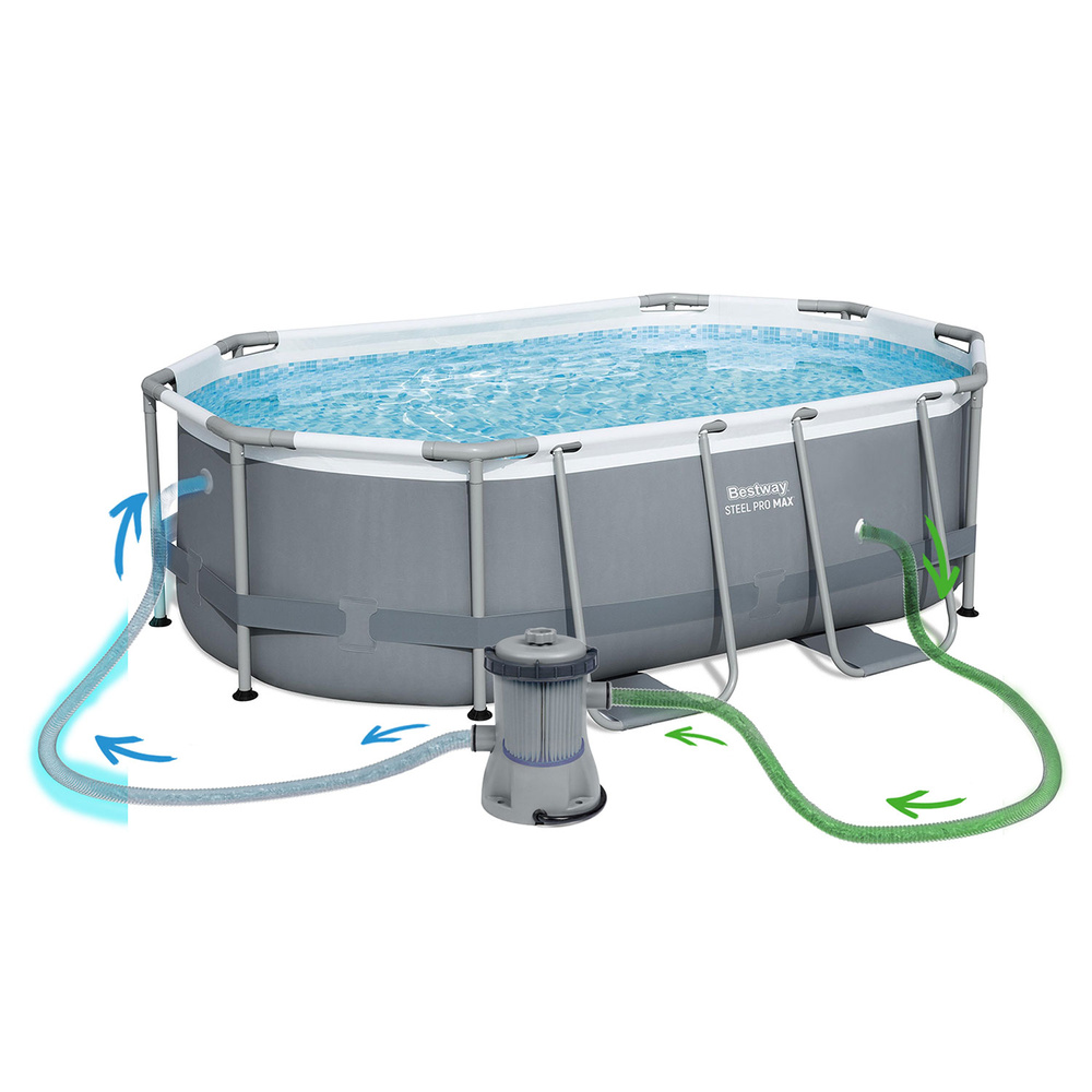 - Basen ogrodowy stelażowy 305 x 200 x 84 cm 10w1 Bestway to kompaktowy i funkcjonalny basen, idealny do ogrodu. W zestawie znajduje się 10 funkcji, które zapewniają wygodę użytkowania i łatwy montaż.