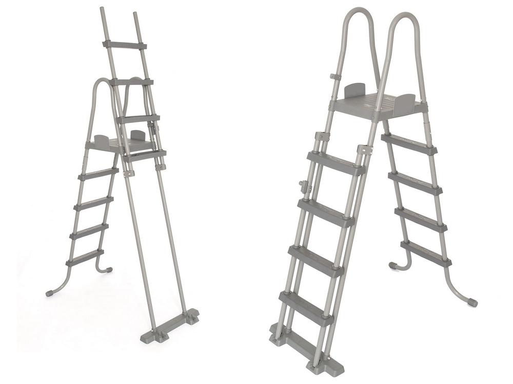 - Bezpieczna drabinka basenowa Bestway o wysokości 132 cm, wyposażona w antykorozyjną metalową ramę, antypoślizgowe stopnie oraz zdejmowane schodki, które zapobiegają nieautoryzowanemu dostępowi do basenu. Spełnia normę EN16713