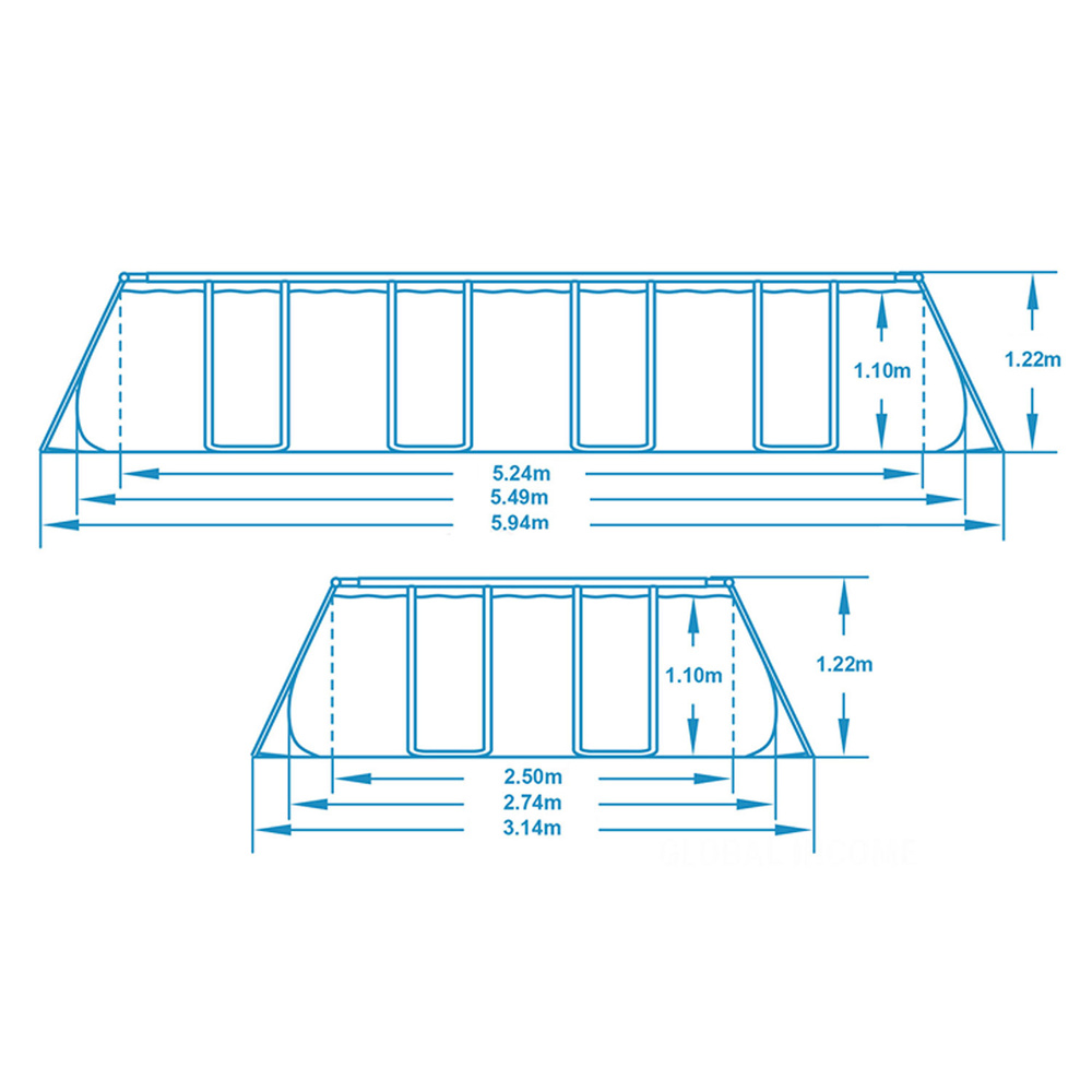 - Wymiary: 549 cm długości, 274 cm szerokości i 122 cm wysokości, zapewniające obszerną przestrzeń do pływania i zabawy.