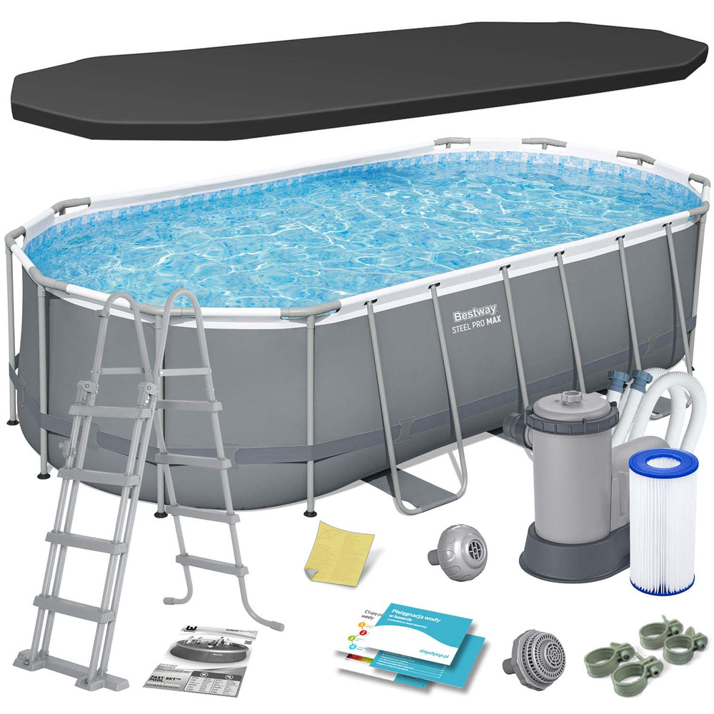 - Basen ogrodowy stelażowy Bestway Power Steel 549 x 274 x 122 cm. Zestaw 12w1: pompa filtrująca, filtr typ III, dozownik chemii, drabinka, pokrywa, sitka, zaciski, węże, łatka naprawcza, instrukcja PL, przewodnik