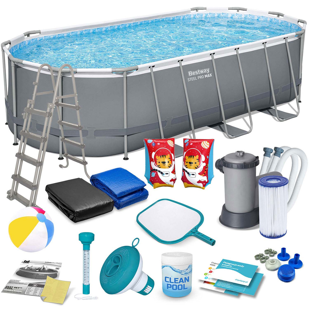 - Akcesoria: drabinka, siatka do czyszczenia, termometr, łatka naprawcza