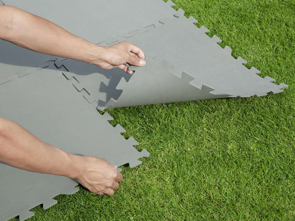 idealne rozwiązanie do zabezpieczenia podłoża pod basenem, jacuzzi czy innymi powierzchniami wymagającymi amortyzacji i izolacji. Składająca się z 9 puzzli, pozwala na elastyczne dopasowanie do różnych kształtów i rozmiarów przestrzeni.