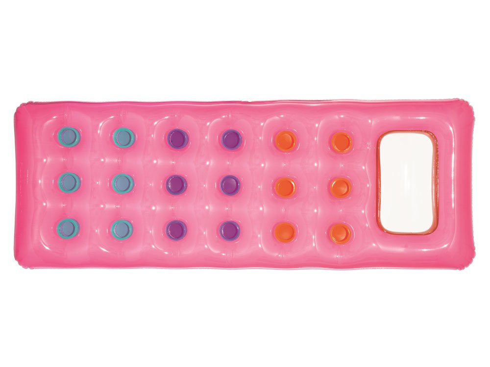 Rewelacyjny dmuchany materac do pływania Bestway świetnie sprawdzi się podczas leniuchowania w wodzie. Bajecznie kolorowy materac z przeźroczystym okienkiem zapewni czystą przyjemność podczas odpoczynku. Prezentowany produkt w letnich, świeżych kolorach bardzo efektownie będzie reprezentował się na każdej plaży. Materac został wykonany z tworzywa PVC. Jego maksymalne obciążenie to 90 kilogramów. Płaszczyzna materaca o wymiarze 188 x 71 cm pomieści bez problemu dorosłą osobę.