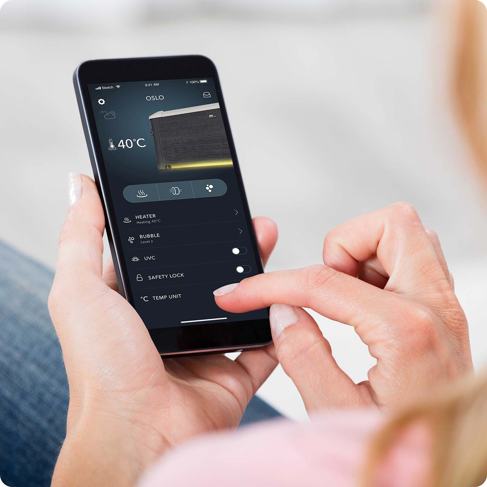 Aplikacja Mspa zapewnia pełną kontrolę nad Twoim spa w dowolnym czasie i miejscu! Obsługa aplikacji jest niezwykle prosta dzięki starannie zaprojektowanemu interfejsowi użytkownika.