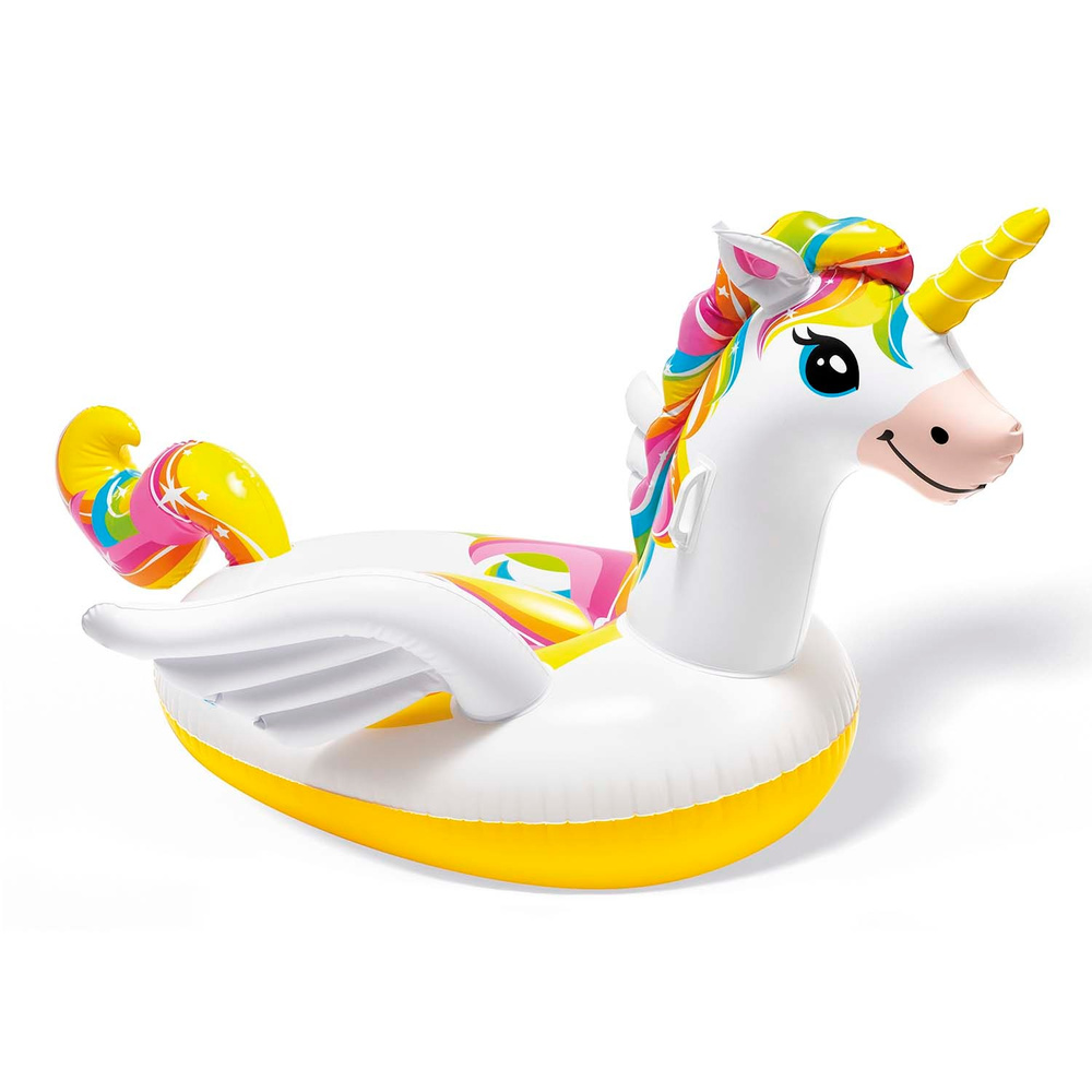 - Piękny materac do pływania w kształcie jednorożca. Zabawka posiada 2 mocne uchwyty oraz 2 niezależne komory powietrzne. W zestawie znajduje się również łatka naprawcza